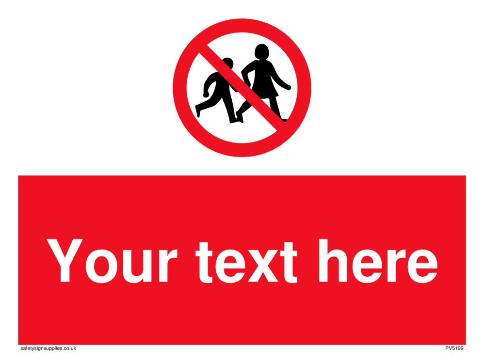 This sign contains a no children symbol - children outline in black with a red circle crossed through.