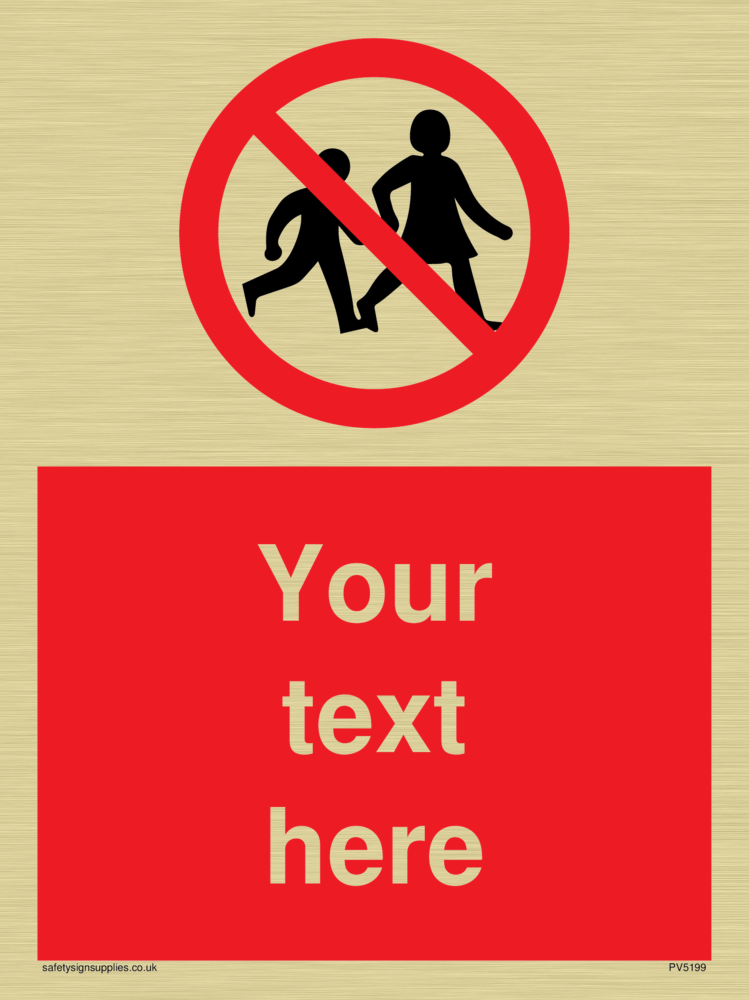 Suitable for mounting on a smooth surface Suitable for fixing to a suspended ceiling. Suitable for mounting on an uneven surface Suitable for perpendicular installation Custom signs contain the text required by the customer. With your your text and a standard safety sign symbol - a bespoke sign can fit any requirement.