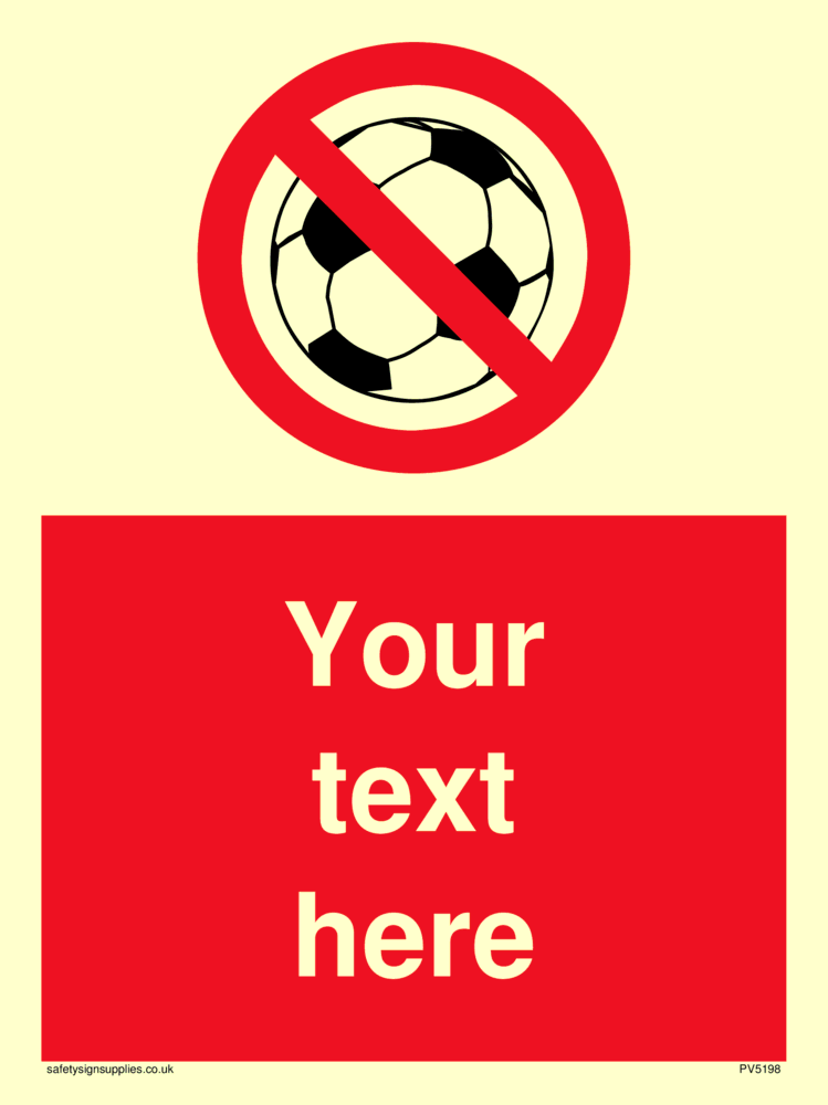 This sign contains a football symbol with red prohibition circle and line diagonally crossed through.