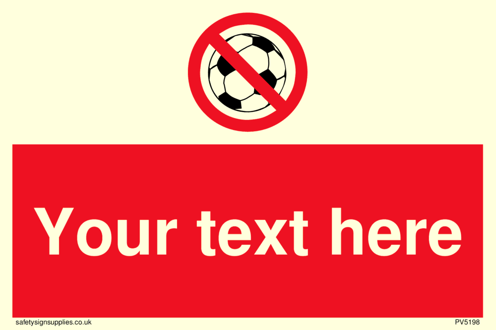 This sign contains a football symbol with red prohibition circle and line diagonally crossed through.