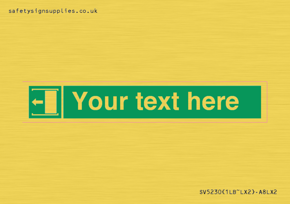 Durability: 3-5 years Mounting Surface: door Materials: Sticker Material Colour: Gold Custom Text: Yes Language: ENGLISH Language (EN) Symbol: E034 : Door slides left to open Internal Layout: 1LB : 1 letterbox pod in a Letterbox Cut Configuration: 60x10mm Rectangle(s) Region: UK