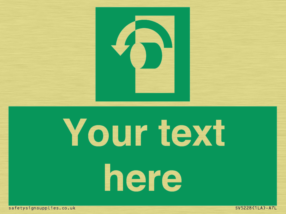 Function: To signify that the doorknob of a security door on an escape route must be turned in an anticlockwise direction in order for the opening device to operate.