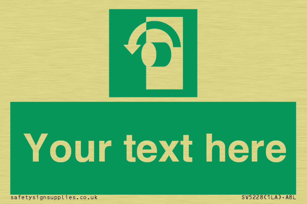 Function: To signify that the doorknob of a security door on an escape route must be turned in an anticlockwise direction in order for the opening device to operate.