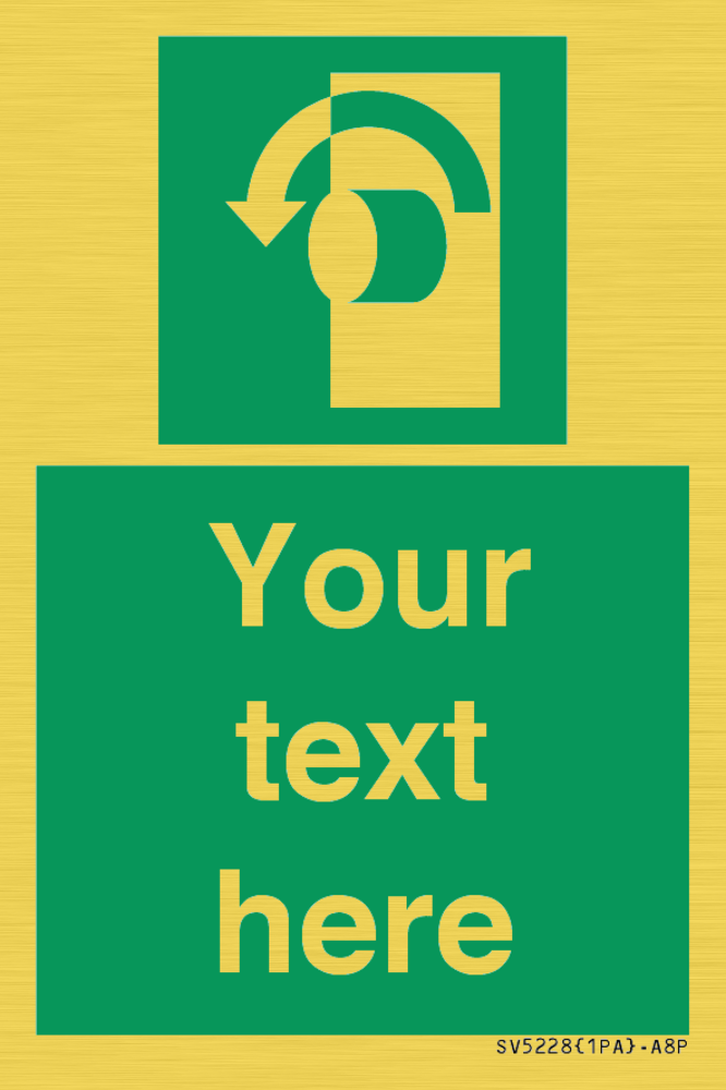 Function: To signify that the doorknob of a security door on an escape route must be turned in an anticlockwise direction in order for the opening device to operate.