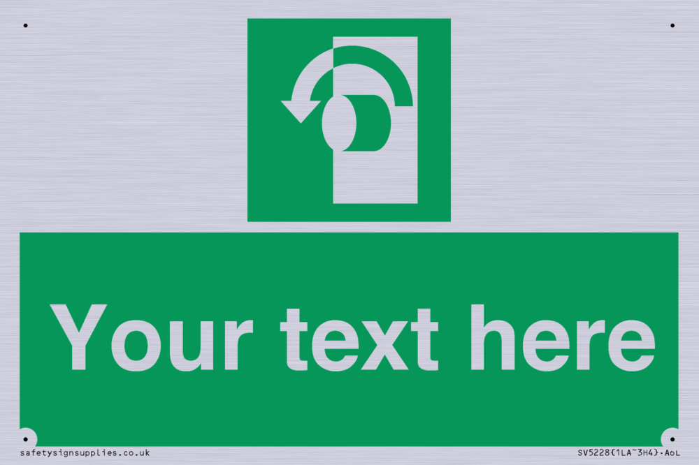 Function: To signify that the doorknob of a security door on an escape route must be turned in an anticlockwise direction in order for the opening device to operate.
