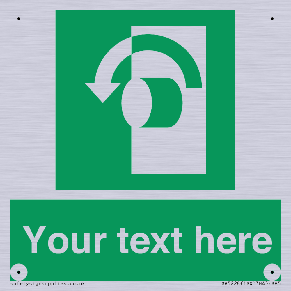 Function: To signify that the doorknob of a security door on an escape route must be turned in an anticlockwise direction in order for the opening device to operate.