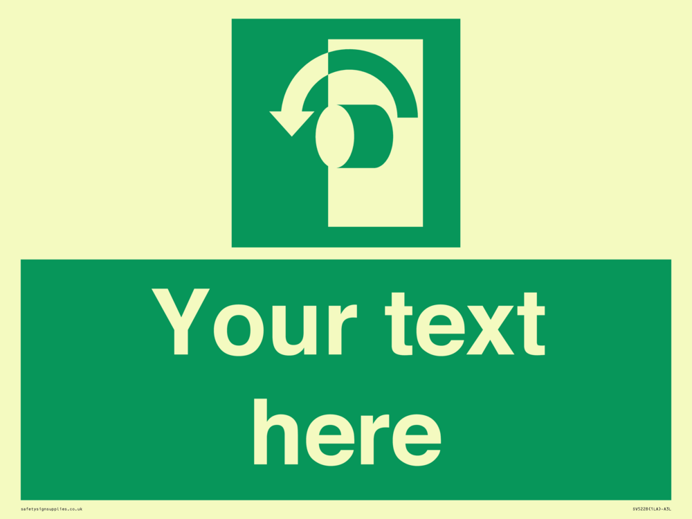 Function: To signify that the doorknob of a security door on an escape route must be turned in an anticlockwise direction in order for the opening device to operate.
