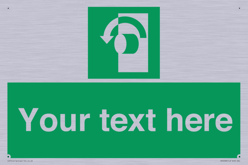 Function: To signify that the doorknob of a security door on an escape route must be turned in an anticlockwise direction in order for the opening device to operate.