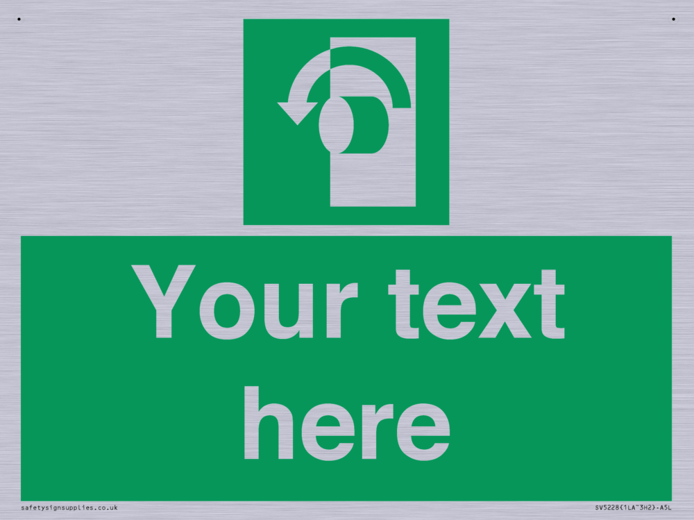 Function: To signify that the doorknob of a security door on an escape route must be turned in an anticlockwise direction in order for the opening device to operate.