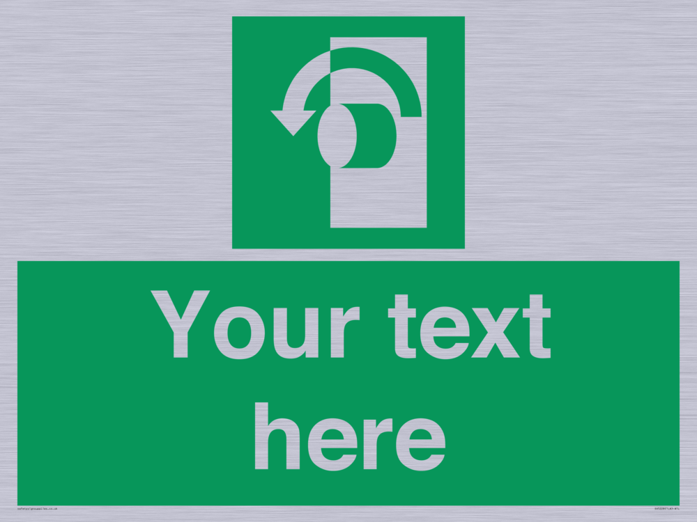 Function: To signify that the doorknob of a security door on an escape route must be turned in an anticlockwise direction in order for the opening device to operate.