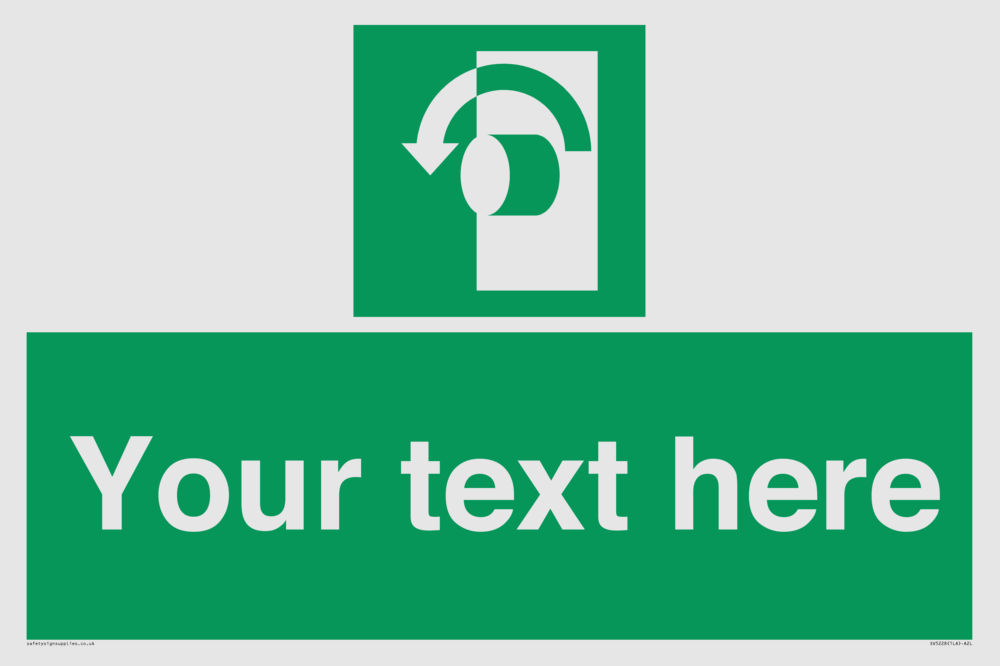 Function: To signify that the doorknob of a security door on an escape route must be turned in an anticlockwise direction in order for the opening device to operate.