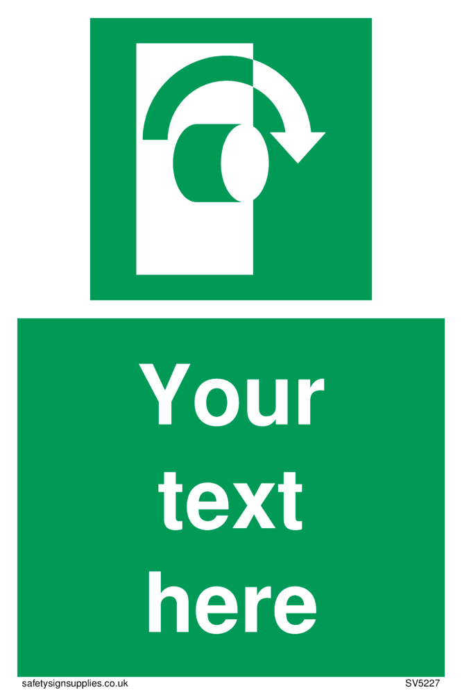 Function: To signify that the doorknob of a security door on an escape route must be turned in a clockwise direction in order for the opening device to operate.