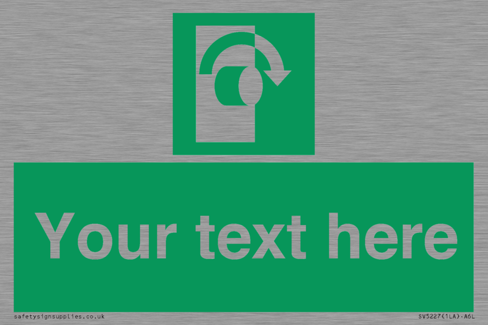 Function: To signify that the doorknob of a security door on an escape route must be turned in a clockwise direction in order for the opening device to operate.