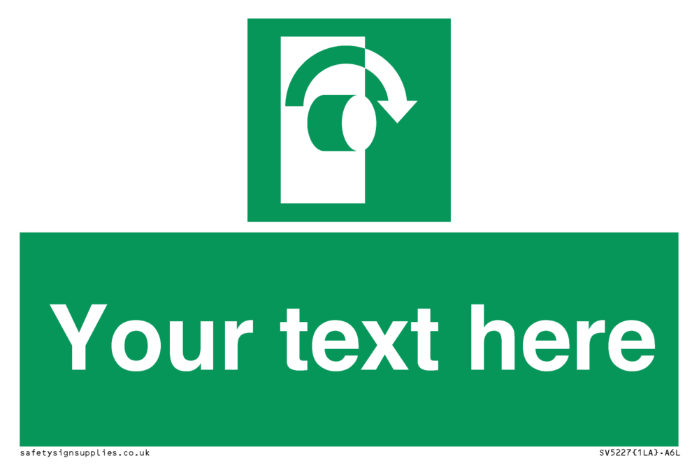Function: To signify that the doorknob of a security door on an escape route must be turned in a clockwise direction in order for the opening device to operate.