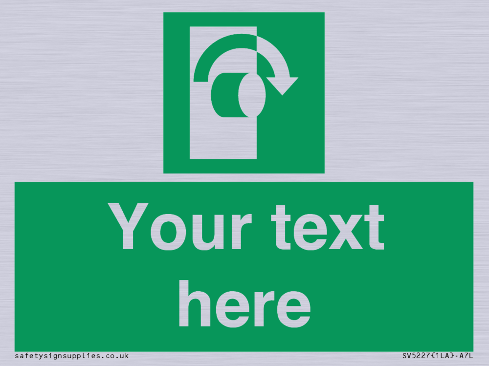 Function: To signify that the doorknob of a security door on an escape route must be turned in a clockwise direction in order for the opening device to operate.
