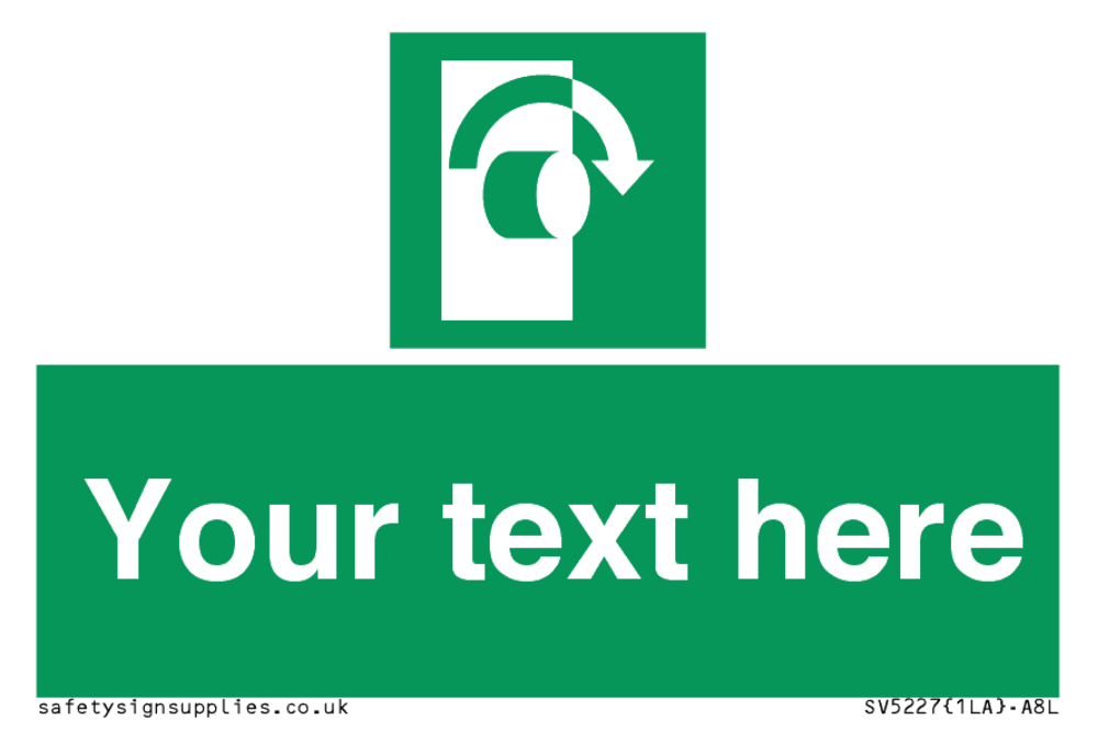 Function: To signify that the doorknob of a security door on an escape route must be turned in a clockwise direction in order for the opening device to operate.