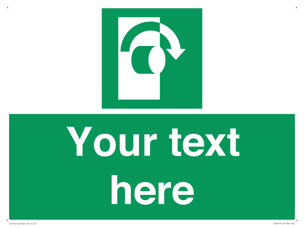 Function: To signify that the doorknob of a security door on an escape route must be turned in a clockwise direction in order for the opening device to operate.