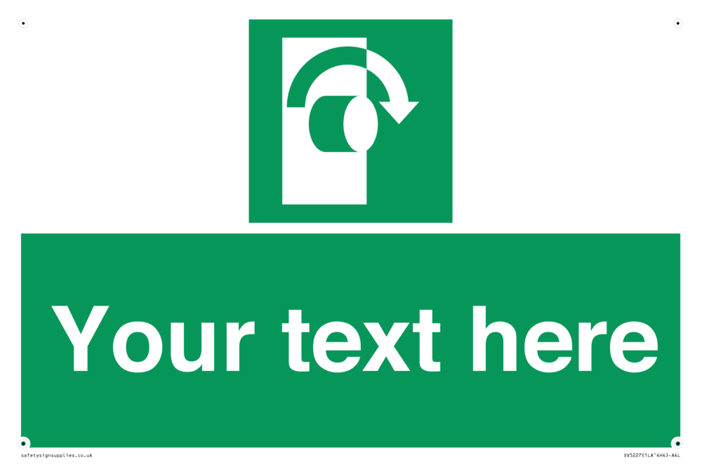 Function: To signify that the doorknob of a security door on an escape route must be turned in a clockwise direction in order for the opening device to operate.