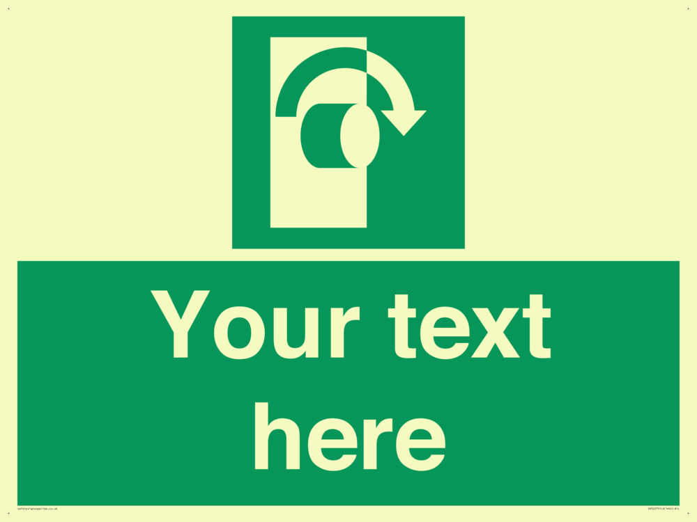 Function: To signify that the doorknob of a security door on an escape route must be turned in a clockwise direction in order for the opening device to operate.