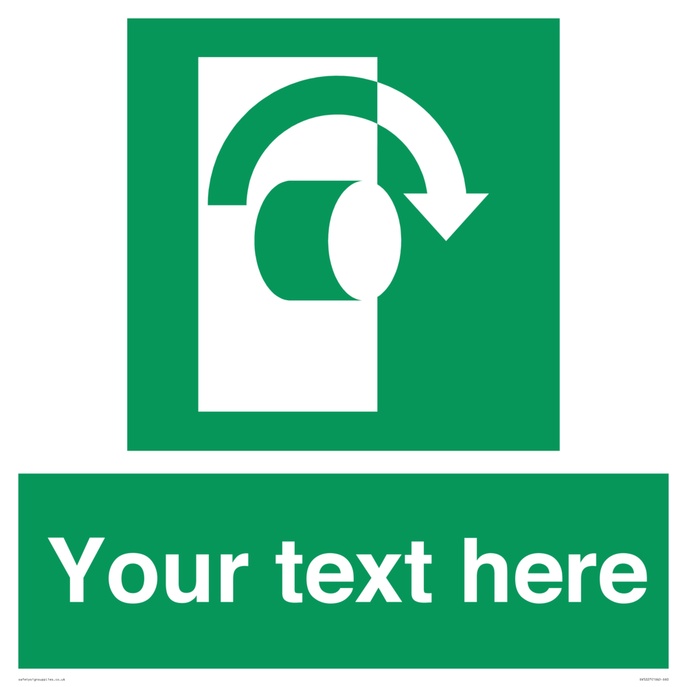 Function: To signify that the doorknob of a security door on an escape route must be turned in a clockwise direction in order for the opening device to operate.