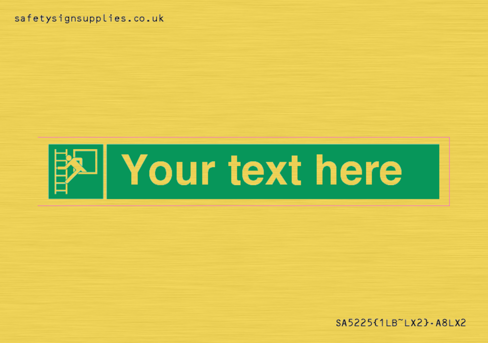 Durability: 3-5 years Mounting Surface: door Materials: Sticker Material Colour: Gold Custom Text: Yes Language: ENGLISH Language (EN) Symbol: E016 : Emergency window with escape ladder Internal Layout: 1LB : 1 letterbox pod in a Letterbox Cut Configuration: 60x10mm Rectangle(s) Region: UK