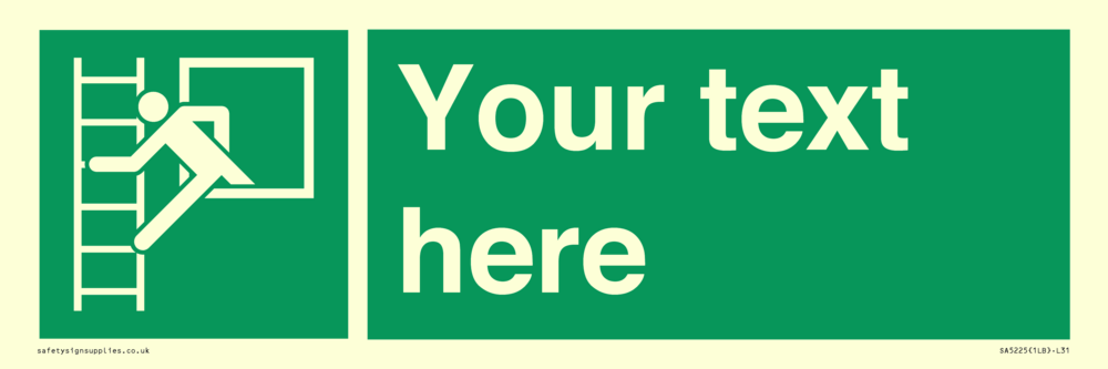 Durability: 3-5 years Mounting Surface: flat Materials: Sticker Material Colour: Glow in the Dark Custom Text: Yes Language: ENGLISH Language (EN) Symbol: E016 : Emergency window with escape ladder Internal Layout: 1LB : 1 letterbox pod in a Letterbox Unit Dimension: 300x100mm Region: UK