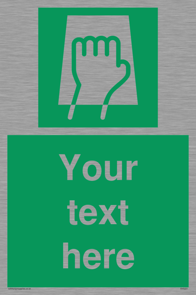 Suitable for mounting on a smooth surface Suitable for fixing to a suspended ceiling. Suitable for mounting on an uneven surface Custom signs contain the text required by the customer. With your your text and a standard safety sign symbol - a bespoke sign can fit any requirement.