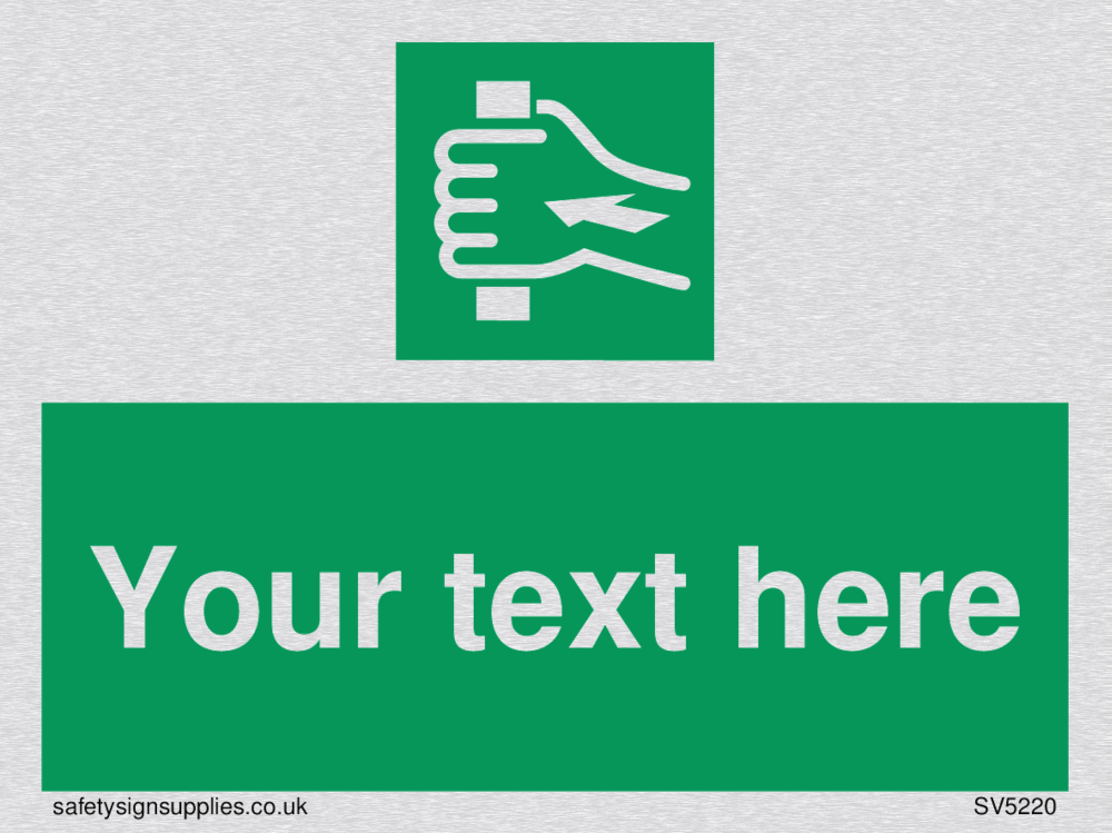 This sign contains a push /pull to open symbol - hand pushing or pulling bar with arrow in white on green background. Suitable for fixing with screws. Suitable for hanging with a premium hanging kit.