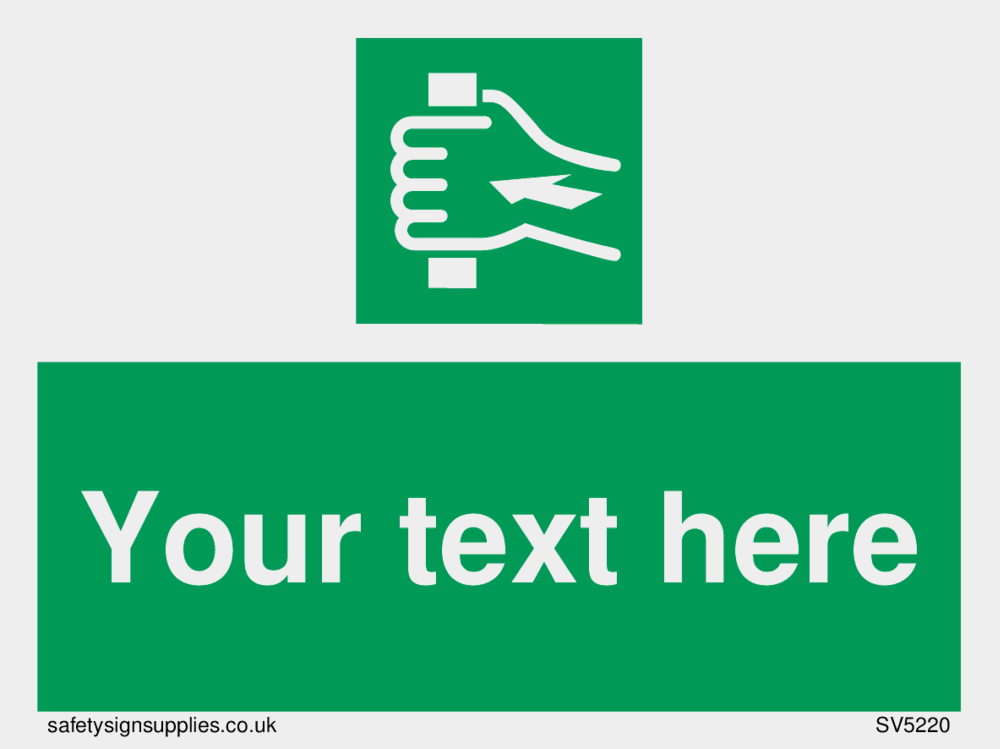 Suitable for mounting on a smooth surface Suitable for fixing to a suspended ceiling. Suitable for mounting on a wall Custom signs contain the text required by the customer. With your your text and a standard safety sign symbol - a bespoke sign can fit any requirement.