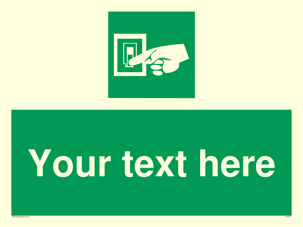 Suitable for mounting on a wall Suitable for mounting on a door. Suitable for mounting on a smooth surface Custom signs contain the text required by the customer. With your your text and a standard safety sign symbol - a bespoke sign can fit any requirement.