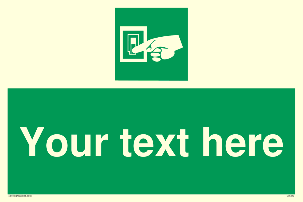 Suitable for mounting on a wall Suitable for mounting on a door. Suitable for mounting on a smooth surface Custom signs contain the text required by the customer. With your your text and a standard safety sign symbol - a bespoke sign can fit any requirement.