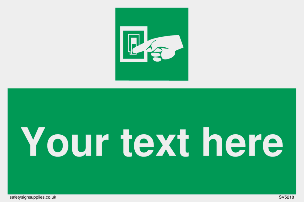 Suitable for mounting on a smooth surface Suitable for fixing to a suspended ceiling. Suitable for mounting on a wall Custom signs contain the text required by the customer. With your your text and a standard safety sign symbol - a bespoke sign can fit any requirement.