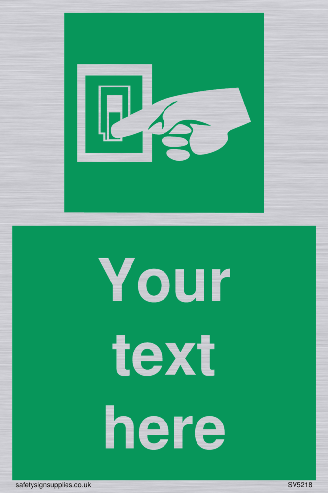 Suitable for mounting on a rough surface Suitable for mounting on a smooth surface Suitable for fixing to a suspended ceiling. Suitable for mounting on an uneven surface Custom signs contain the text required by the customer. With your your text and a standard safety sign symbol - a bespoke sign can fit any requirement.