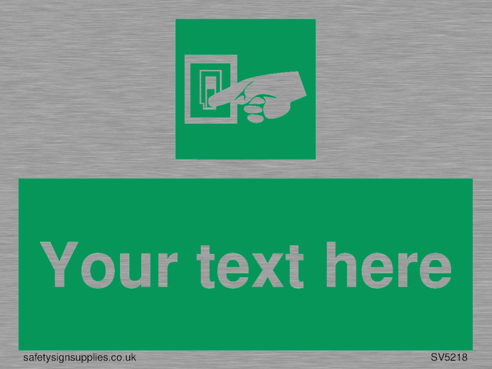 Suitable for mounting on a smooth surface Suitable for fixing to a suspended ceiling. Suitable for mounting on an uneven surface Custom signs contain the text required by the customer. With your your text and a standard safety sign symbol - a bespoke sign can fit any requirement.
