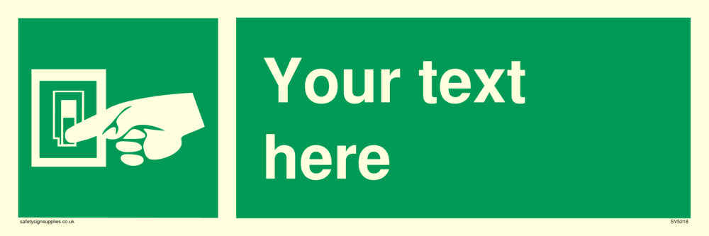 Suitable for mounting on a wall Suitable for mounting on a door. Suitable for mounting on a smooth surface Custom signs contain the text required by the customer. With your your text and a standard safety sign symbol - a bespoke sign can fit any requirement.