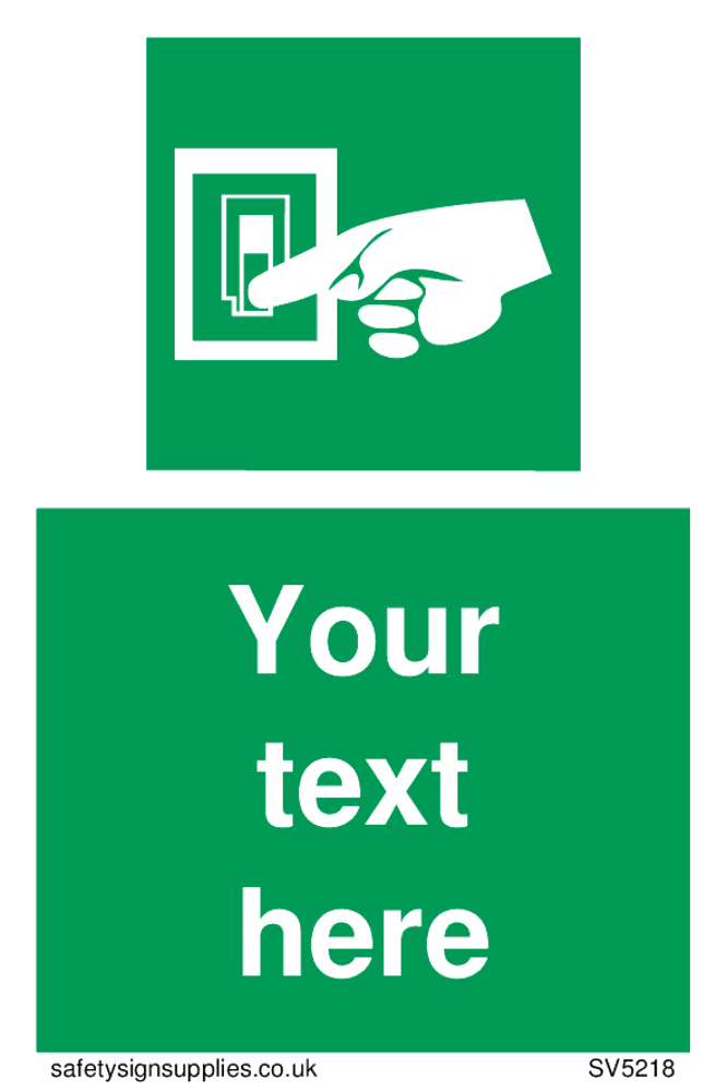Suitable for mounting on a door. Suitable for mounting on cladding. This product is design to be mounted on the ceiling. Custom signs contain the text required by the customer. With your your text and a standard safety sign symbol - a bespoke sign can fit any requirement.