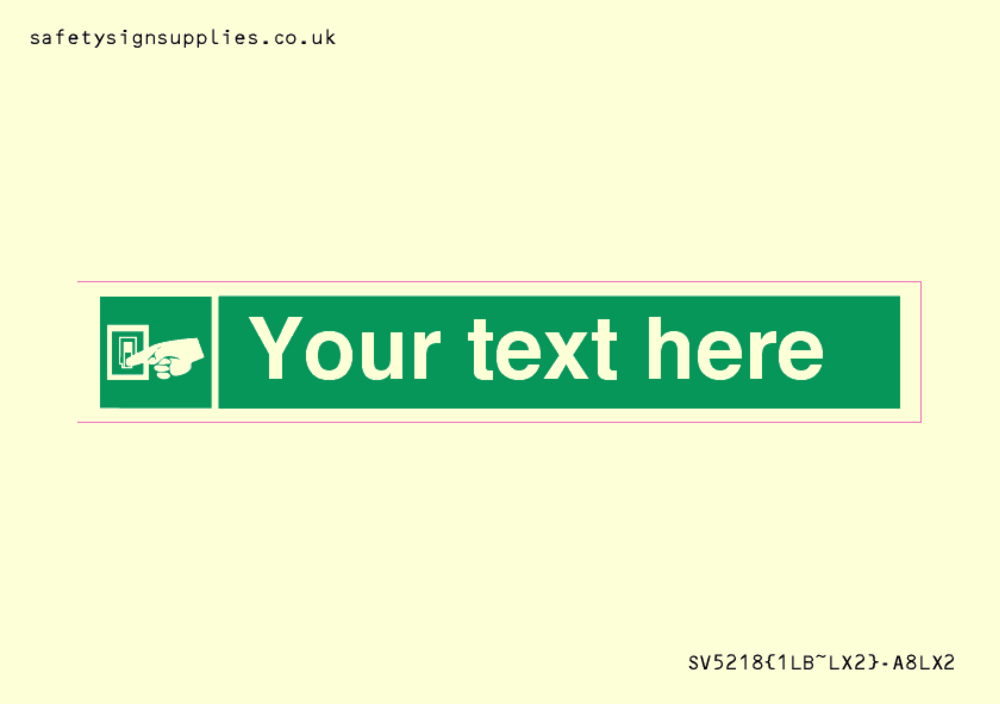 Mounting Surface: Window / Glass Materials: Sticker Material Colour: Glow in the Dark Custom Text: Custom Export Language: ENGLISH Language (EN) Symbol: E903 : Safety switch Internal Layout: 1LB : 1 letterbox pod in a Letterbox Cut Configuration: 60x10mm Rectangle(s) Region: UK