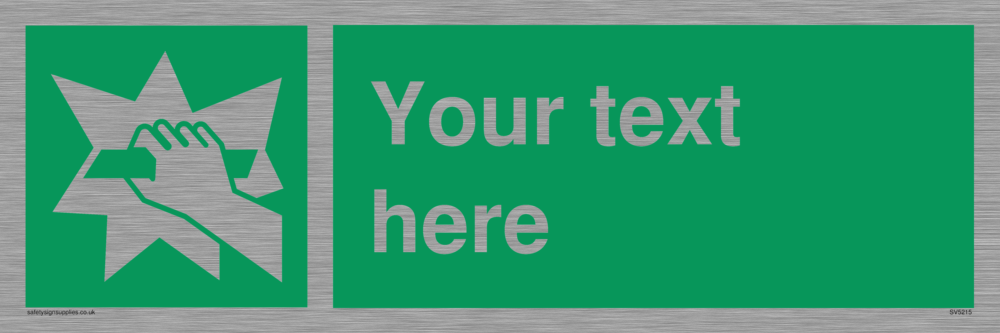 Suitable for mounting on a smooth surface Suitable for fixing to a suspended ceiling. Suitable for mounting on an uneven surface Custom signs contain the text required by the customer. With your your text and a standard safety sign symbol - a bespoke sign can fit any requirement.
