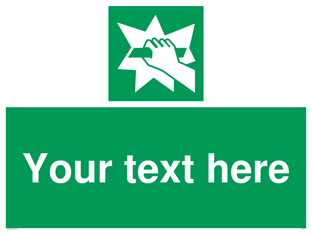 Suitable for fixing to a suspended ceiling. Suitable for mounting on a wall Custom signs contain the text required by the customer. With your your text and a standard safety sign symbol - a bespoke sign can fit any requirement.