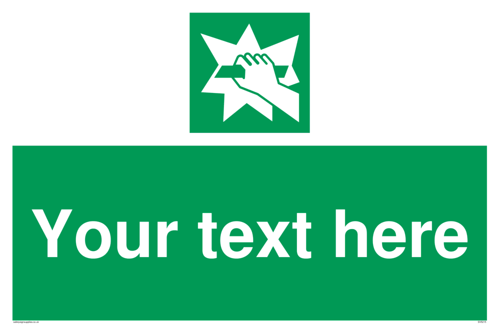 Suitable for fixing to a suspended ceiling. Suitable for mounting on a wall Custom signs contain the text required by the customer. With your your text and a standard safety sign symbol - a bespoke sign can fit any requirement.