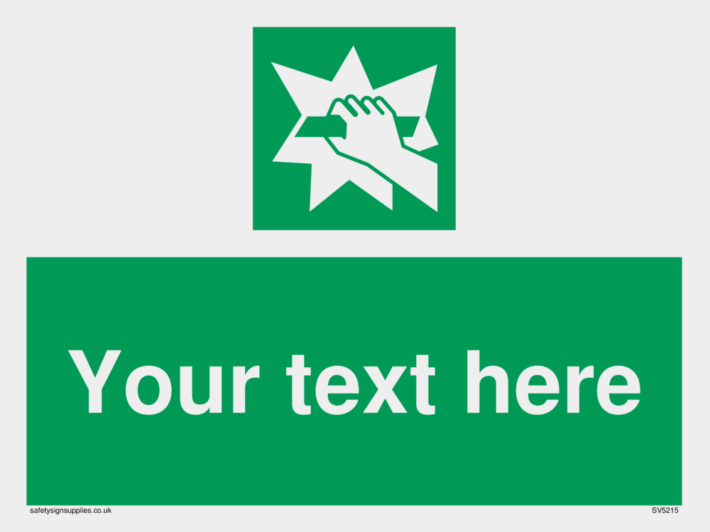 Suitable for mounting on a smooth surface Suitable for fixing to a suspended ceiling. Suitable for mounting on a wall Custom signs contain the text required by the customer. With your your text and a standard safety sign symbol - a bespoke sign can fit any requirement.