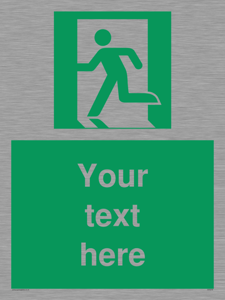 This sign contains a running man on exit facing left symbol - running person in green on exit in white. This symbol is used on BS5499 signs. Suitable for fixing with screws.
