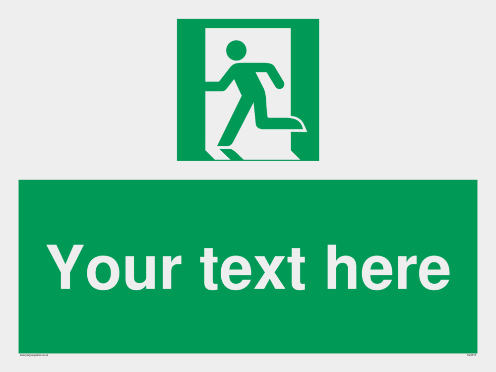 This sign contains a running man on exit facing left symbol - running person in green on exit in white. This symbol is used on BS5499 signs.