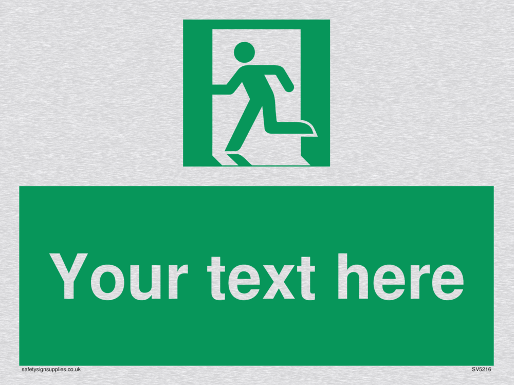 This sign contains a running man on exit facing left symbol - running person in green on exit in white. This symbol is used on BS5499 signs. Suitable for hanging with a premium hanging kit.