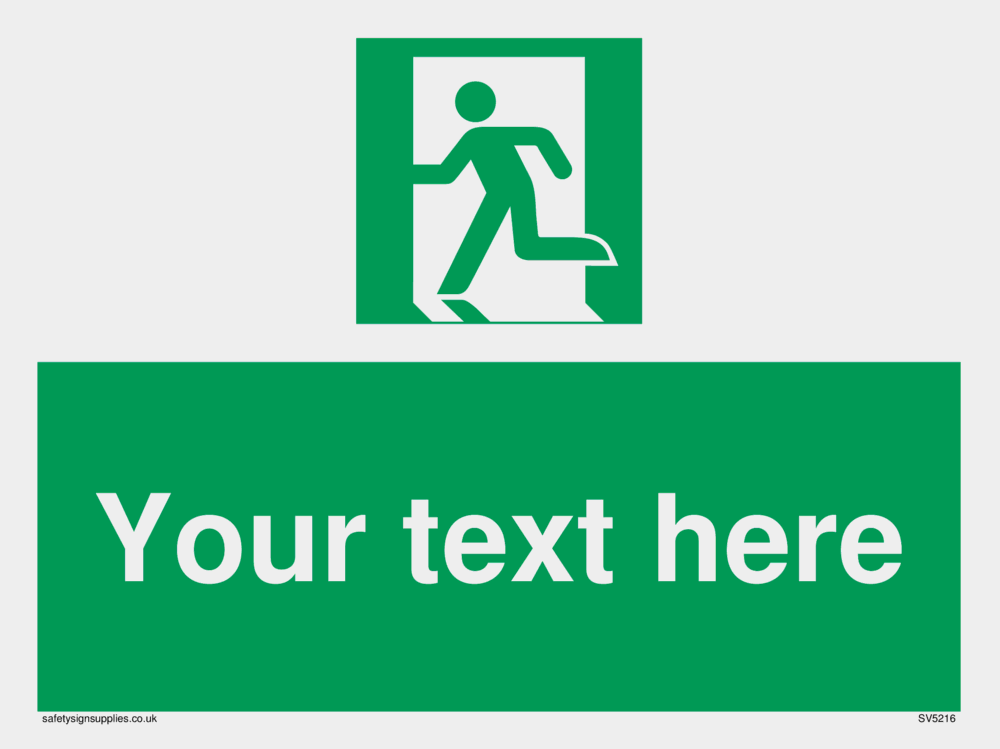 This sign contains a running man on exit facing left symbol - running person in green on exit in white. This symbol is used on BS5499 signs.