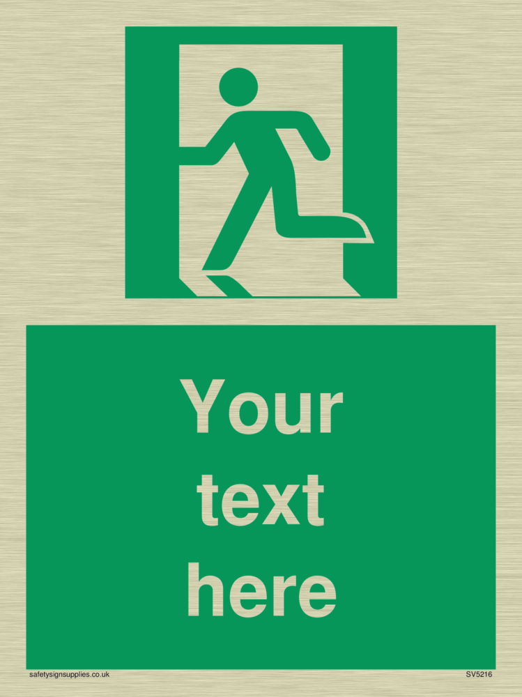 This sign contains a running man on exit facing left symbol - running person in green on exit in white. This symbol is used on BS5499 signs. Suitable for hanging with a premium hanging kit.