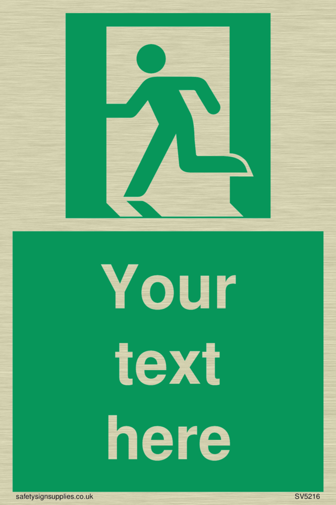 This sign contains a running man on exit facing left symbol - running person in green on exit in white. This symbol is used on BS5499 signs. Suitable for hanging with a premium hanging kit.