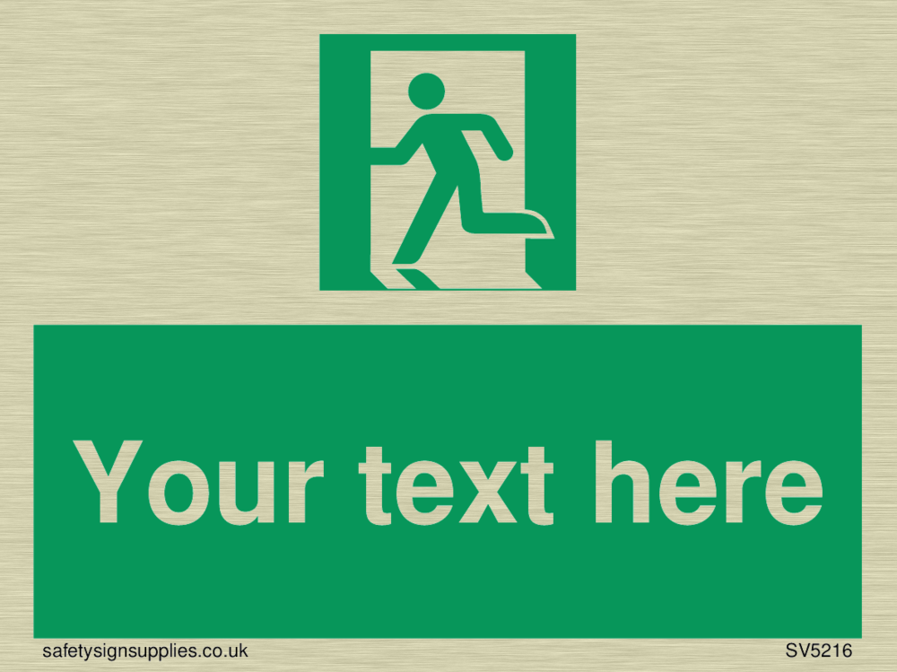 This sign contains a running man on exit facing left symbol - running person in green on exit in white. This symbol is used on BS5499 signs. Suitable for hanging with a premium hanging kit.