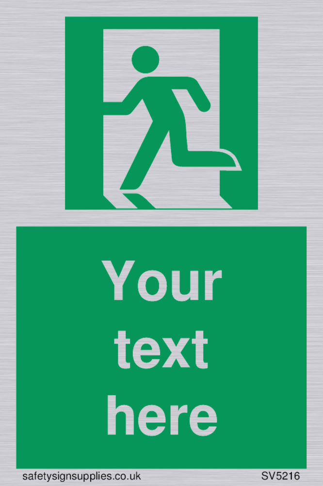 This sign contains a running man on exit facing left symbol - running person in green on exit in white. This symbol is used on BS5499 signs. Suitable for hanging with a budget hanging kit.