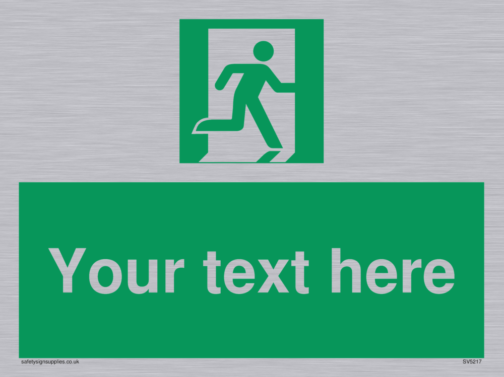 This sign contains a running man on exit facing right symbol - running person in green on exit in white. Suitable for fixing with screws. Suitable for hanging with a premium hanging kit.